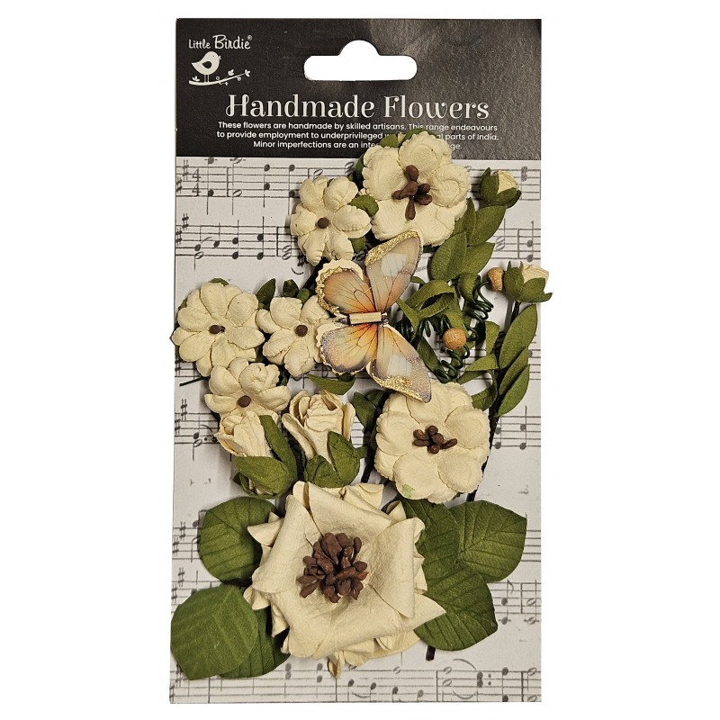 Flores de papel artesanais da marca Little Birdie, ideais para seus trabalhos artesanais, scrapbook, mixmedia, confecção de cartões, bijuterias, decoração...