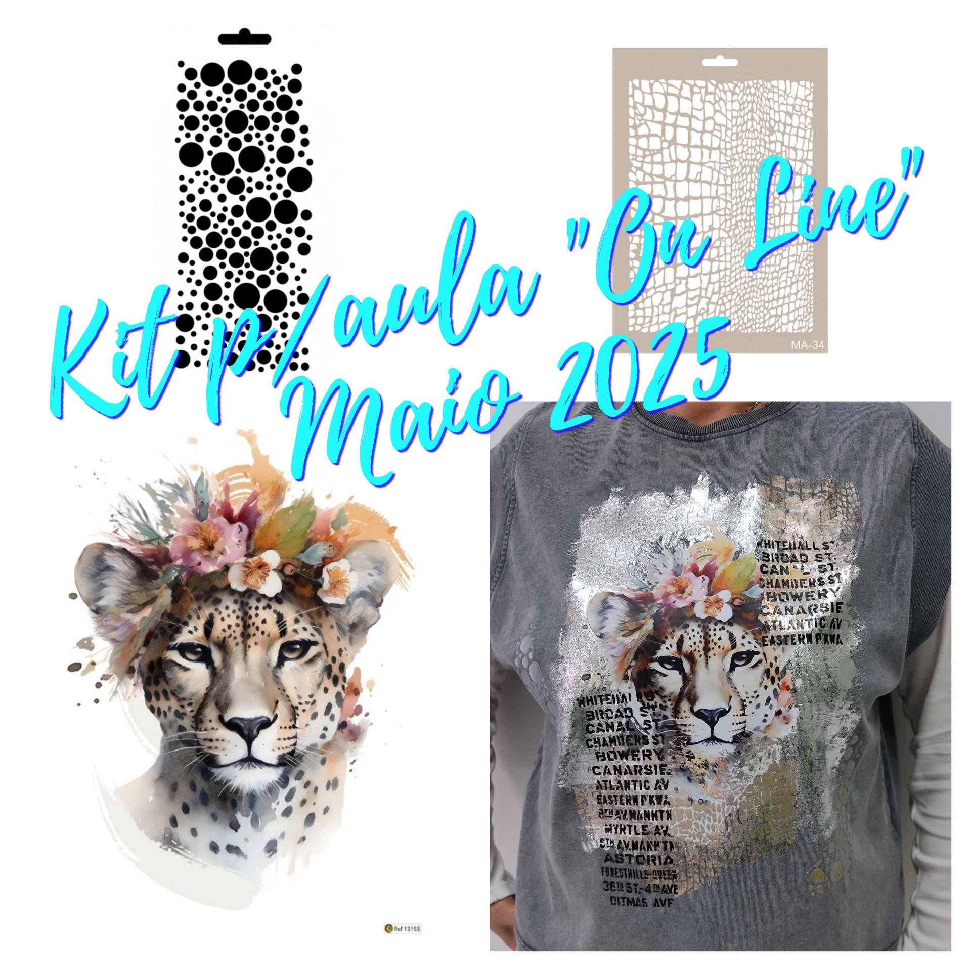 Home K I T S Kit T-Shirt "Chita" Kit T-Shirt "Chita" 17,90 € Desconto de %. Comprar Contactar Adicionar à wishlist Kit composto por : - 0,50mt foil prata - 0,25mt foil ouro - 1un x Papel Transfer Chita 21x28cm - 1un x Stencil Mix Media PONTOS 10x25 - 1un x STENCIL MIX MEDIA REDE A4 - 1un x Stencil LETRAS Materiais necessários FORA DO kit : - 1un x HEAT TRANSFER MEDIUM 90ml - 1un x Pasta Kumas Fabric 15798 - 1un x Pasta Kumas Fabric 15910 - 1un x Pasta Fashion Fabric FP-12 Tags T-shirt Características Partilhar