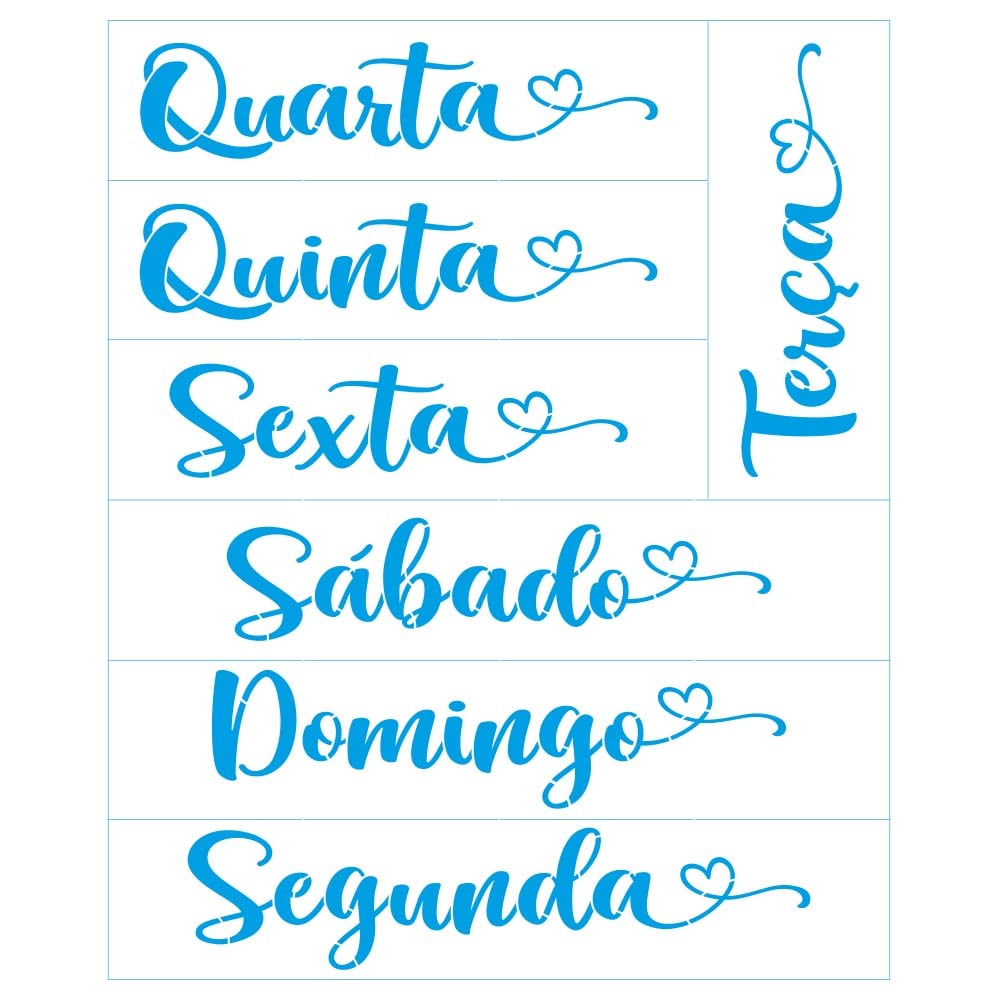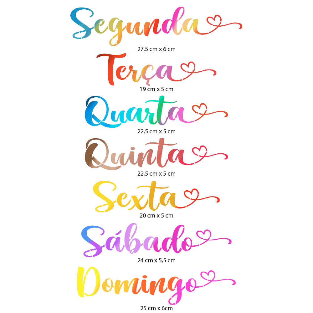 Home LitoArte Diversas medidas Stencil 42x34cm - Dias da Semana ST2-001 Stencil 42x34cm - Dias da Semana ST2-001 1 unidades em stock 7,40 € Desconto de %. Comprar Contactar Adicionar à wishlist Recortado a laserMaterial VirgemPoliéster 0,00175mmContém 2 acetatos42 x 34cm Marca LITOARTE Características Partilhar