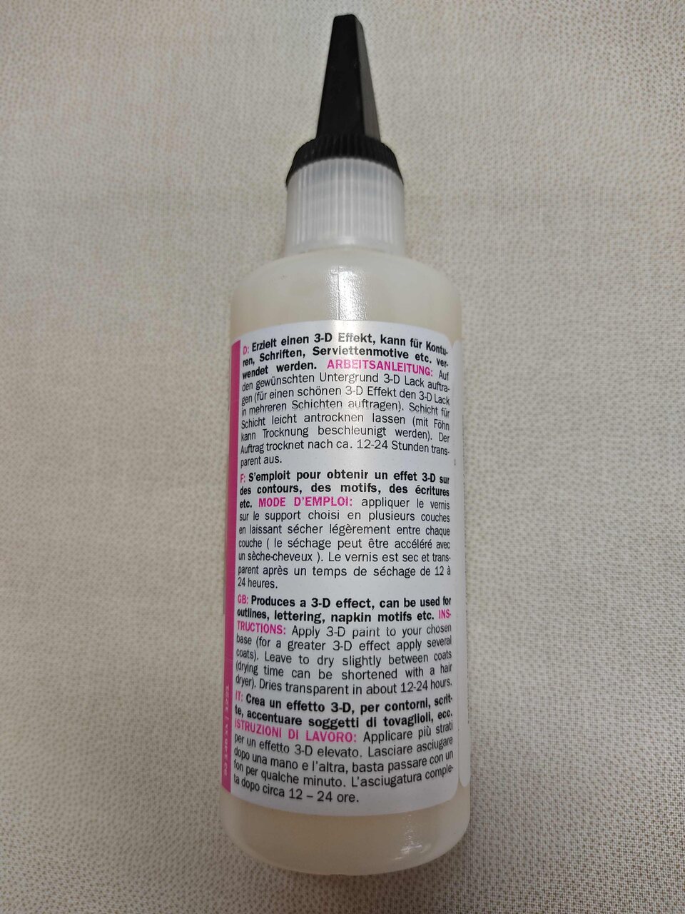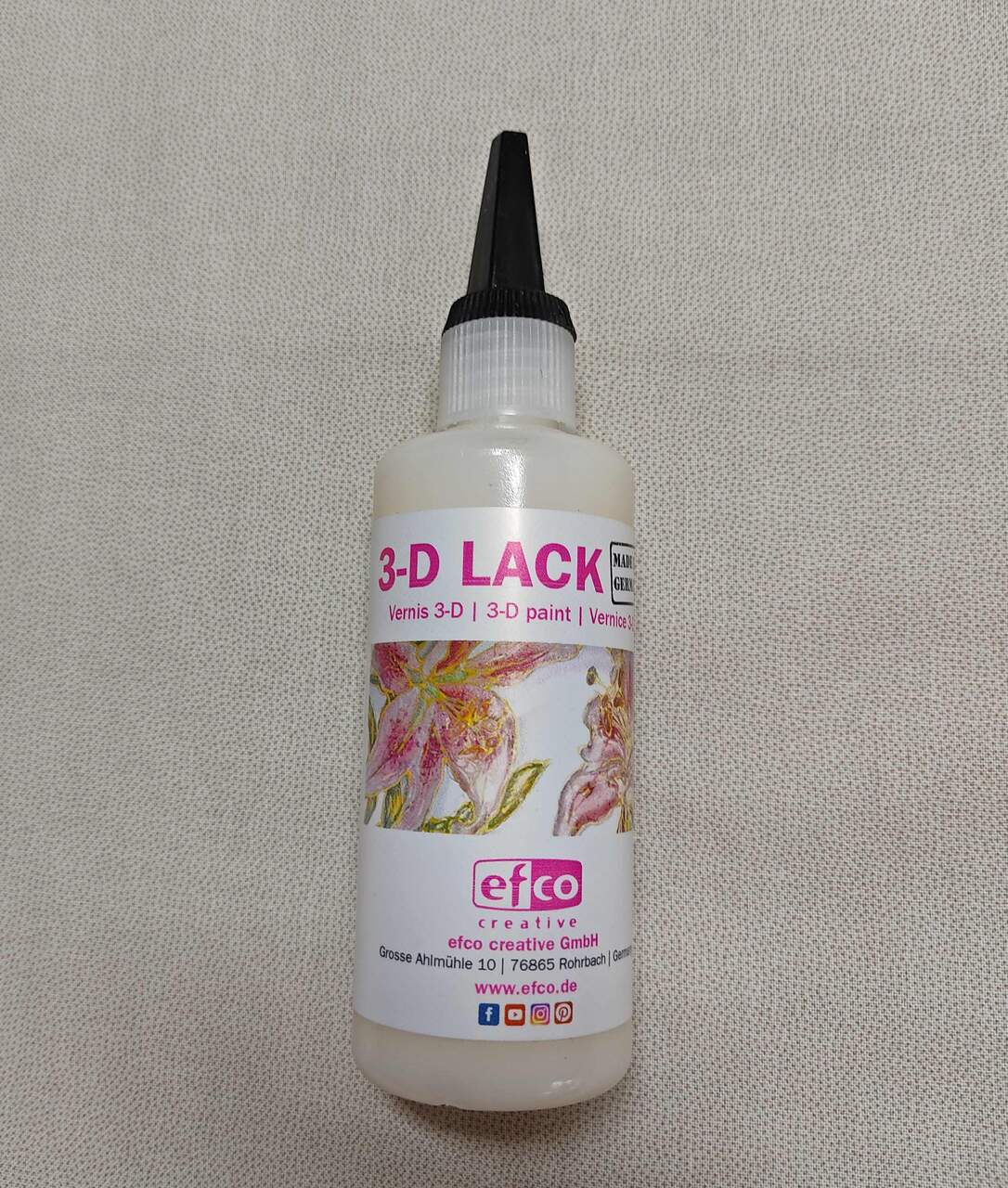 Home Auxiliares de pintura Verniz para efeito tridimensional transparente 3D Lack Efco 100ml Verniz para efeito tridimensional transparente 3D Lack Efco 100ml 1 unidades em stock 7,85 € Desconto de %. Comprar Contactar Adicionar à wishlist Verniz para efeito tridimensional transparente, com aplicador. Sobre uma decoupage deverá aplicar o verniz com o aplicador para realçar pormenores onde deseja dar o efeito tridimensional. Tags 3D Características Partilhar